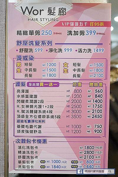店裡的價格表都貼在座位前,每個項目的價格都清楚標示沒有模糊地帶,這裡的價格很有競爭力,重點是技術有到位不會踩雷!Wor hair在新北是知名的網紅髮廊,各區都有分店,各位網帥、網美可以就近找分店去變得更帥更美哦!