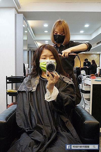 髮尾的捲度完成後接著處理上方的髮絲,用離子夾去夾直塑型,Lara特別針對我乾燥沒彈性的頭髮在溫度上使用較低的溫度操作,這樣才不會因高溫而讓我的頭髮受損,很開心遇到專注細節的髮型師,不然萬一燙失敗了也難以回復就哭哭了。