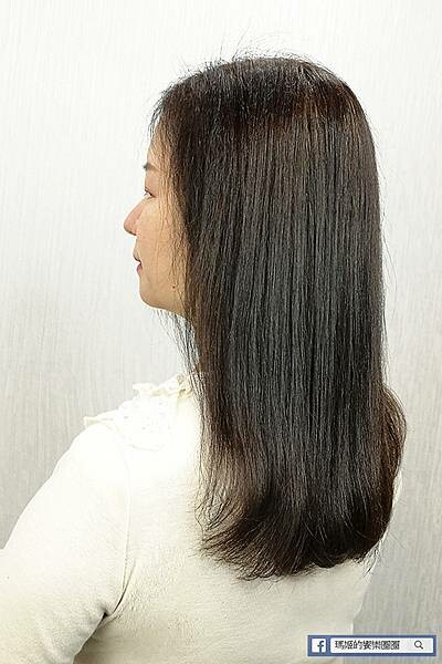 在燙的過程我也注意到我燙好塑型後頭髮沒變扁塌,也因為本身細軟髮又量少,所以預留髮根處一公分不燙直,這樣會讓頭髮有自然的膨度。
