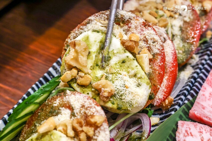 有厚度的乳酪外層還有起司粉和店家自製青醬,搭配堅果和清爽番茄一起入口,羅勒香氣濃郁卻不搶走乳酪的奶香,層層疊出多層次韻味,在口中留下清爽。
