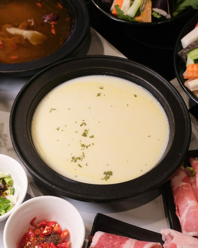 ▼擁有濃郁色澤的北海道牛奶鍋,湯頭滑順奶味醇香不膩口,喝起來很像卡士達濃湯的感覺,讓食材煮後都充滿了奶香氣,不用額外沾醬就很好吃!