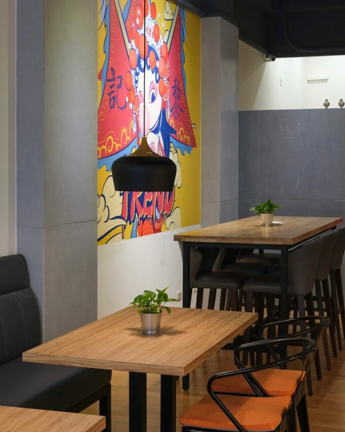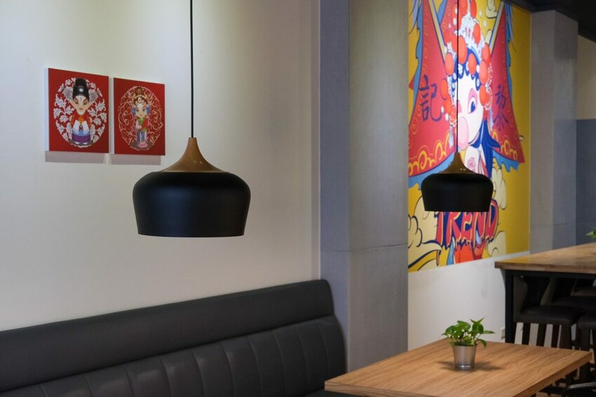 ▼走進【黎記優品】會以為自己來到咖啡廳,灰色揉合紅色系的質感設計,搭配中國的京劇元素裝飾,顛覆大家對牛肉麵店的環境印象,用餐起來舒適又充滿氛圍。
