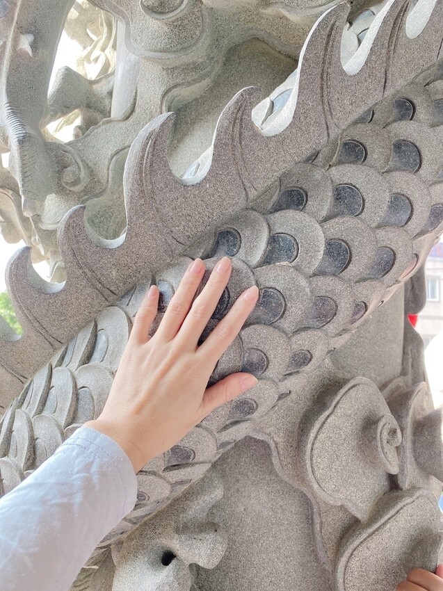 魚躍龍門的龍柱,每一面摸起來都有不同的觸感!