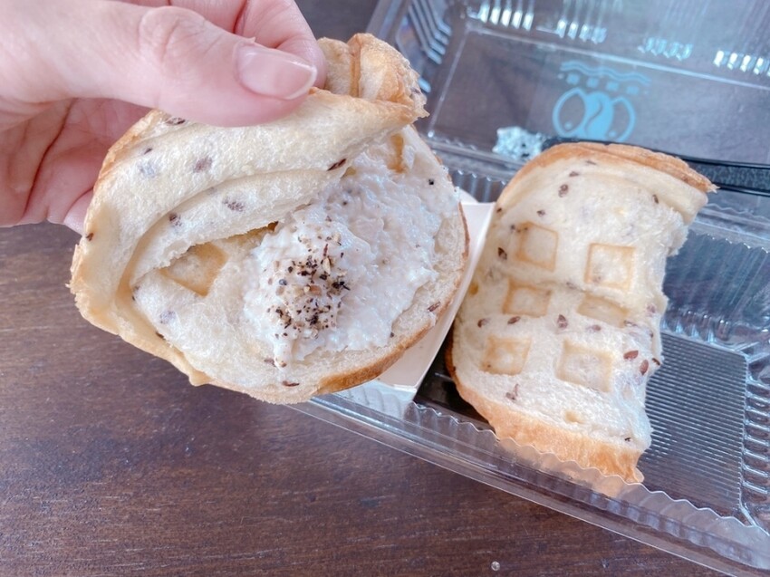 魚池土司包裏著虱目魚做成的沙拉醬,吃起來好爽口,是店內熱門的夏日點心~