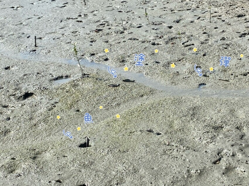 原本受到嚴重污染的白沙崙濕地,在茄萣舢筏協會的努力下,現在擁有許多招潮蟹和彈塗魚~
