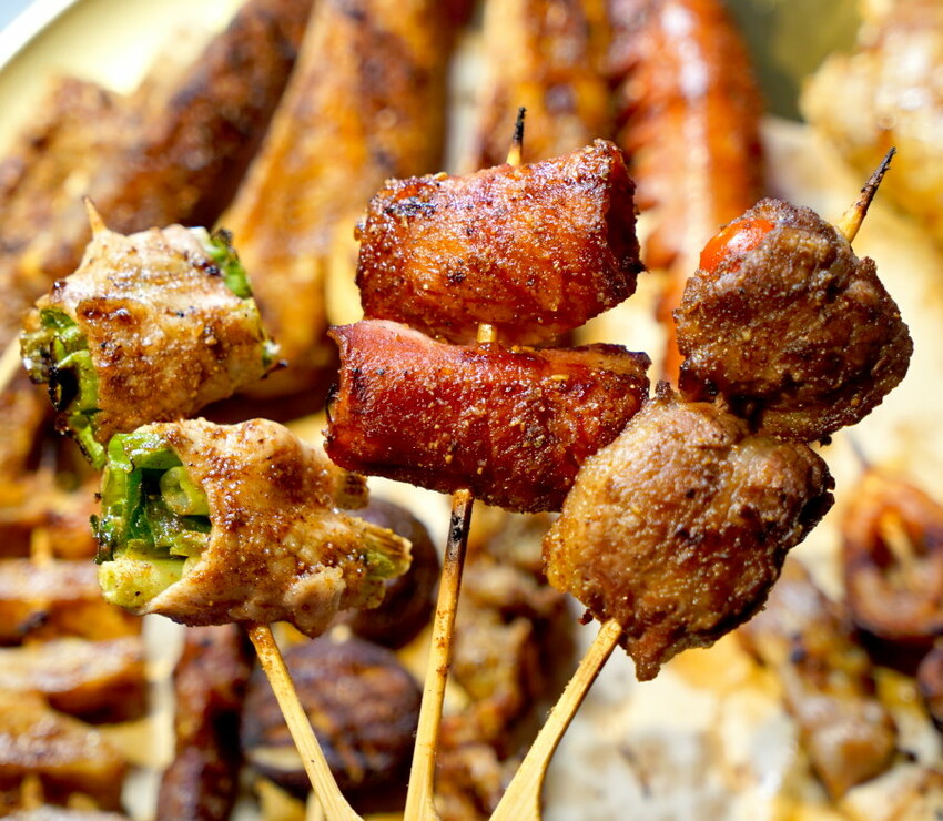 ▼蔥肉串、金針菇培根捲、番茄牛五花捲,有包料的基本上都無雷,還可享兩串65元的組合價;其中我們最喜歡的是番茄牛五花捲,既有肉香,果香還帶點小爆漿口感~金針菇培根捲也不錯,搭配金針菇吃起來鹹度不會太高,整個很爽口!蔥肉串也是有蔥香肉香,搭配在一起就是絕配~