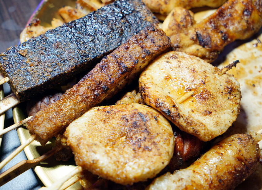 ▼豬血糕、芋頭籤、圓甜不辣也是我們最常點的食材之一,豬血糕帶點黏Q微酥的口感,加上醬料及漢方秘粉調味,吃起來很對味~芋頭籤在串燒店比較少見,吃起來鹹甜交錯,酥鬆又軟Q的口感很夭壽!圓甜不辣就不用說了,軟Q又帶點蓬鬆的口感,加上甘甜微鹹的焦糖滋味,整個都開胃啦!
