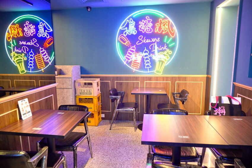 ▼「焦糖楓」主打高CP值平價串燒,裡頭有提供座位區,很適合家人聚會、同事好友聚餐或各種歡慶節日;除了內用之外,這裡也有提供外帶服務,帶回家吃也很速西!