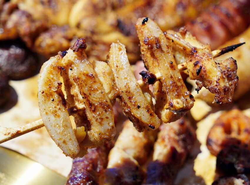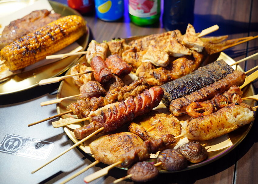 台北美食「焦糖楓」主打現點現烤100%不油炸平價串燒店,最低16元就能吃得到,除了內用還有外帶服務,還能用LINE線上點餐更省時間;目前全台有超過18間門市,每間店都有不同主題風格,大多集中在大台北地區,台中、台南也有分店,大家可以找就近店面前往!我們來訪的是位於台北東區SOGO商圈的「焦糖楓」忠孝復興店,這間走的是復古夜店風,採自助式挑選點餐,不限時、沒有低消,總共有超過50種食材任你挑選~搭配招牌漢方烤肉粉、日式醬油,吃起來甘醇又涮嘴,不管是肉品、海鮮都很合拍,更能襯出食材的鮮美風味;我們隨手拿了一大堆串燒,吃起來很過癮,也不用擔心荷包會破洞,很適合來大口吃肉、大口喝酒!(未滿十八歲請勿飲酒)