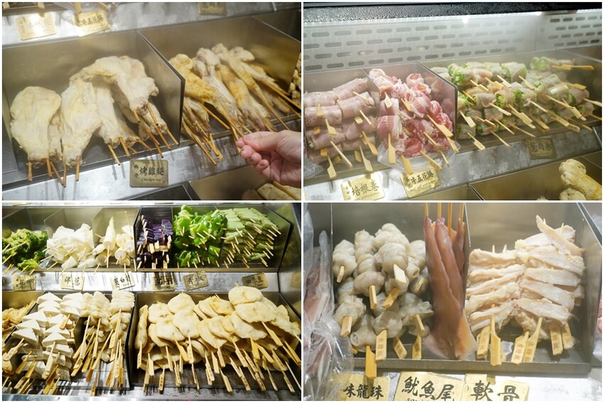 ▼點餐方式採自助式取餐,食材大多放在這一區,一字排開看起來很壯觀啊~只有部份海鮮是從櫃檯直接點餐;而且每一種串燒都有分開擺放,加上水霧噴灑,給人一種乾淨又衛生的感覺!
