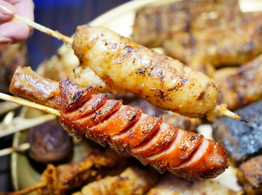 ▼徳式帶骨香腸、糯米腸幾乎是看到必點,帶骨香腸脆彈又多汁,帶點鹹香滋味很涮嘴;糯米腸烤至爆開的口感更是一級棒,外酥內軟Q,還帶有鹹甜甘醇的粉料香氣,搭配起來很合拍!