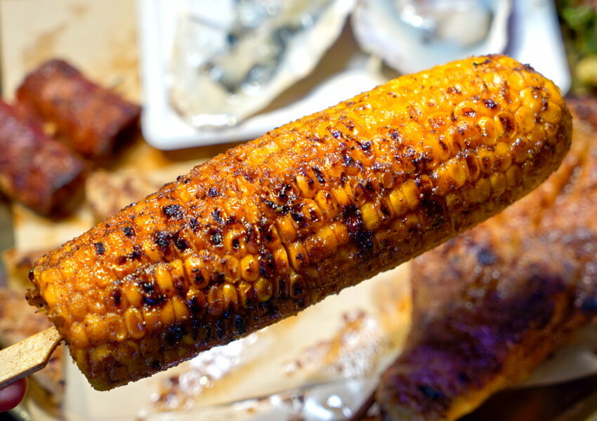 ▼金黃甜玉米,不僅份量十足,原本就香甜的玉米粒經日式醬油、漢方烤粉與火烤的洗禮,整個甜味都包裹在玉米粒裡頭,都可媲美夜市烤玉米啦!