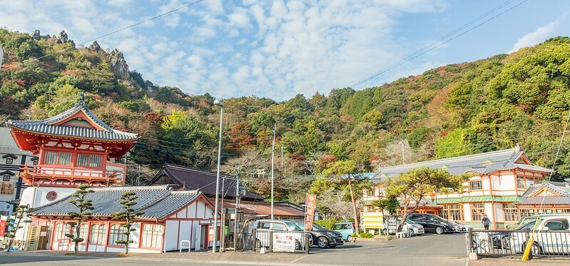 濃濃中國風的紅色樓門,上面的扁額看了半天才知是「蓬萊泉」;有關「蓬萊泉」有個神話傳說,據說日本首位女性君主神功皇后,身懷孕時仍帶兵征戰朝鮮新羅,凱旋後經過蓬莱山山腳時(佐賀離韓國只有200公里),她舉劍破開岩縫湧出大量温泉,治癒了疲備將士、官兵們傷口,身體也得到恢復,直呼是老天賜下的「蓬萊泉」,也就是現在的武雄温泉的由來。