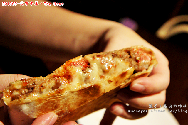 烤過的餅皮包著熱熱的濃郁起司,分量很多的豬肉、莎莎醬塞滿了整個餅包,