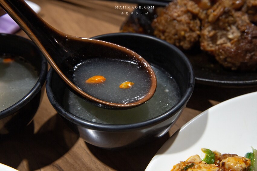 藥膳香氣濃郁,雖說是清湯但雞骨的精華全都是放在這碗清湯中,裡面還加了枸杞,這免費供應的湯品可以這樣用心真的很加分。