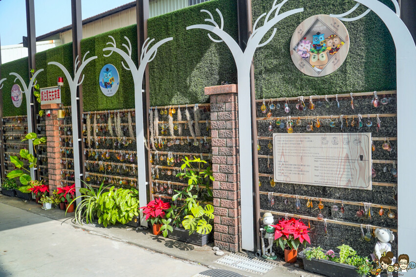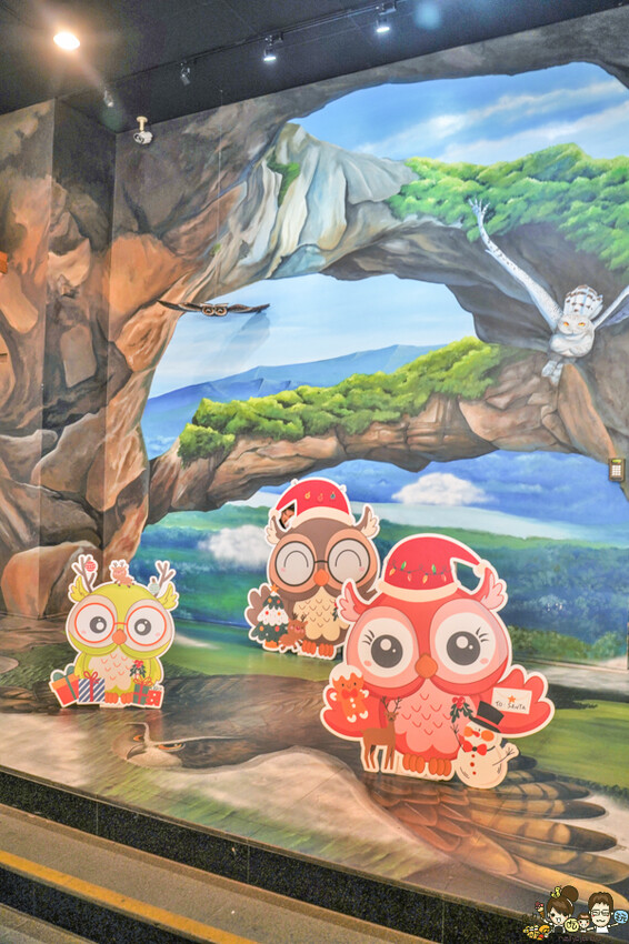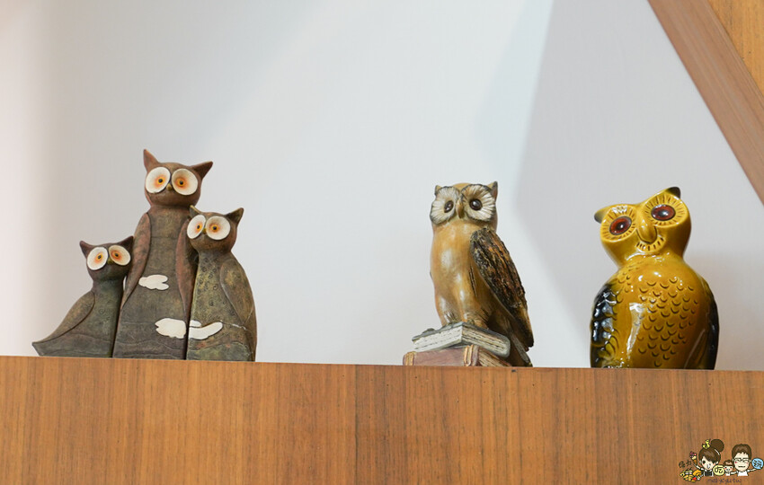 所以從門口、停車場、園區內,很多貓頭鷹擺設與搭建