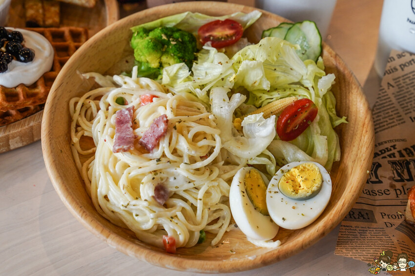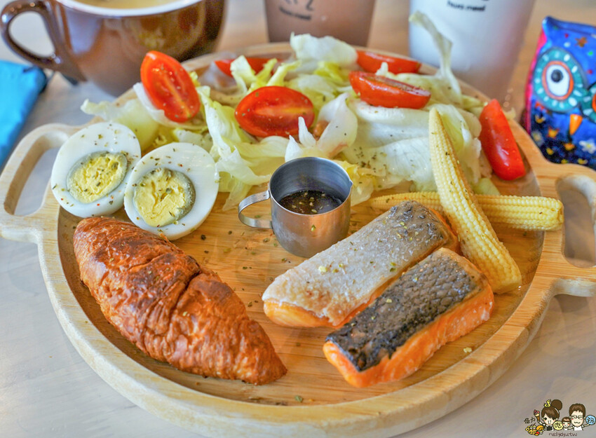 搭配沙拉、蛋、可頌麵包