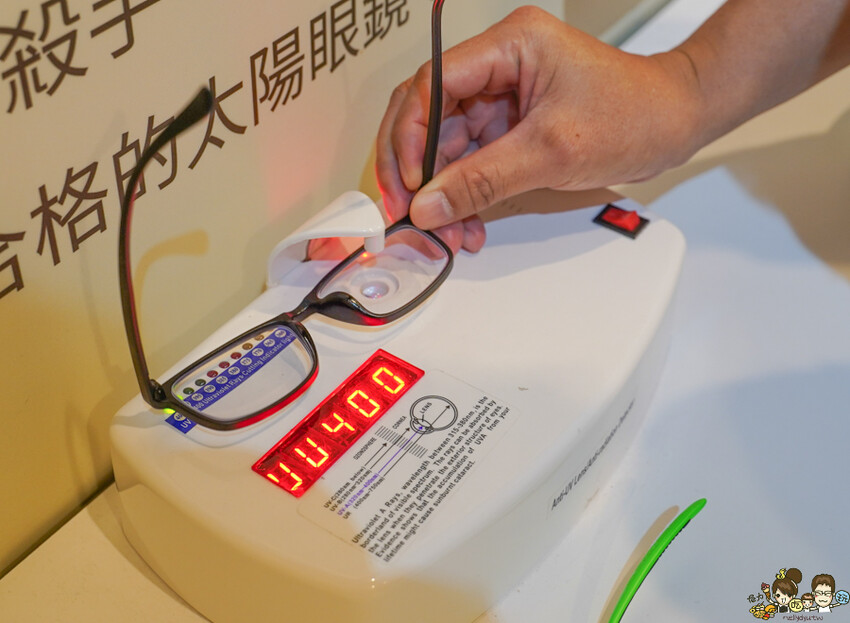 現場也有儀器可以自由測試眼鏡是否有防曬係數,只要400的值都表示有!