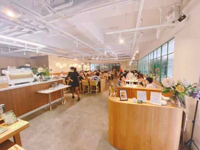 走進門,餐廳前陳列了一些文創文青小物,似乎是有跟某商家一起聯名,再過去也有賣一些蛋糕類的食物。