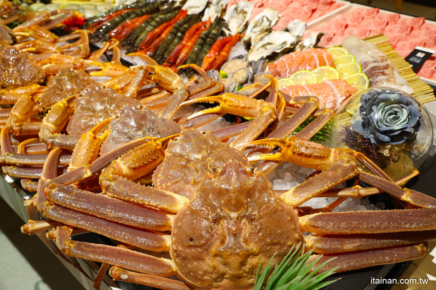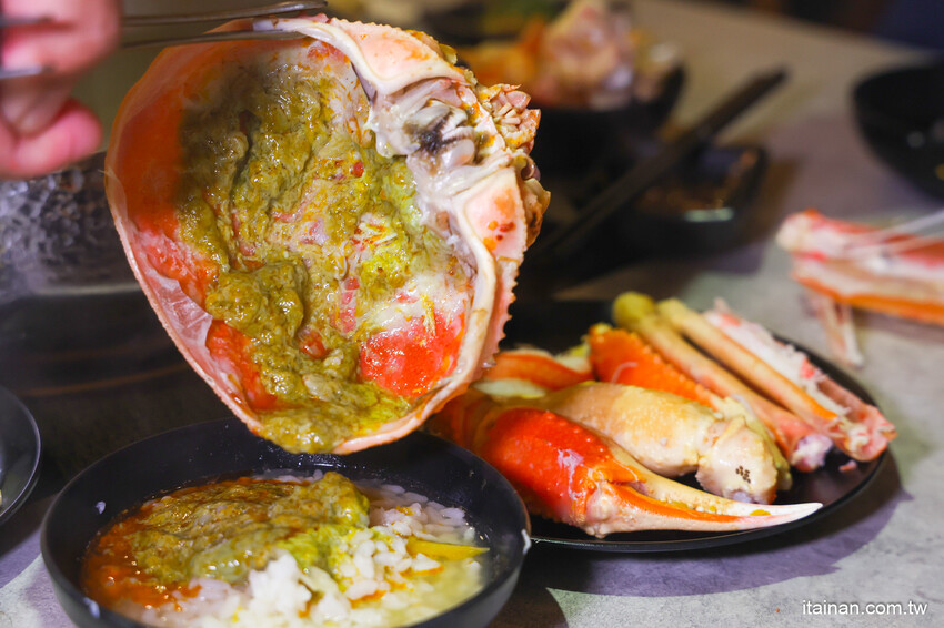 十隻重達一公斤的活體松葉蟹,每人都能獨享一隻真的超奢華,而且每隻上桌都還是活跳跳的,眼睛嘴巴都還會動,新鮮看的見,不用去北海道新鮮的松葉蟹台南就能吃到,是不是太爽?