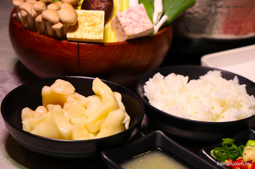 火鍋湯底提供十份單人水炊昆布鍋物,對象座位可製作為鴛鴦鍋,加價更換了秘製麻辣,秘制麻辣以小燈籠椒、二荊條以及辣味出眾的子彈頭辣椒,以麻引出辣。再以白豆蔻、草粿等中藥熬製最後,靜止一星期發酵湯底,呈現出的辣顯得較濃厚紮實,是舒服卻不嗆辣的麻辣,湯頭是可以喝的。水炊昆布鍋物,經典日式純正風味,用來煮海鮮最鮮甜。