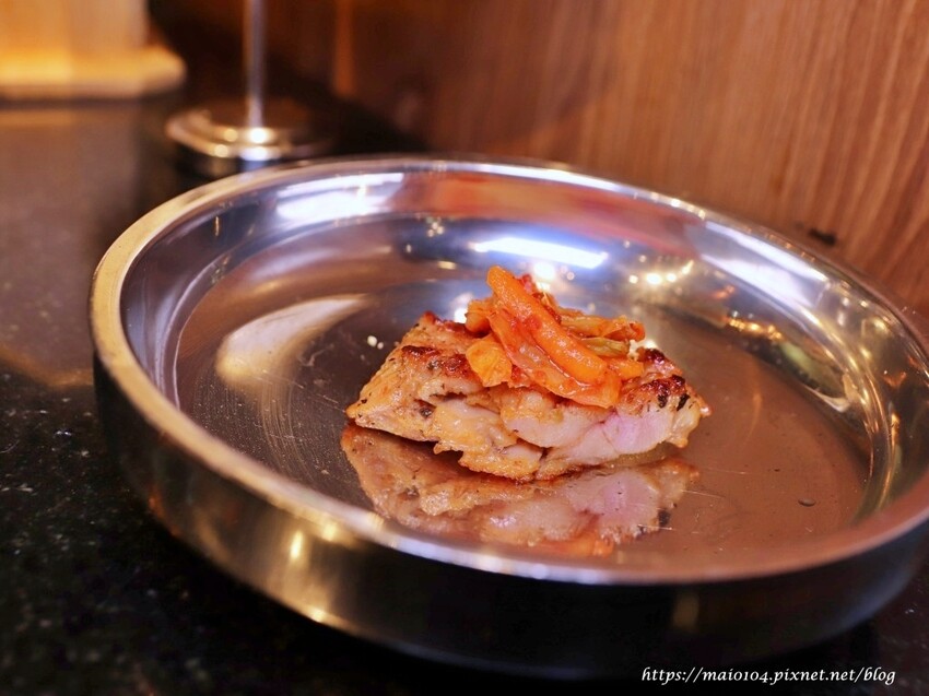 搭配微酸帶點辣度的韓式泡菜一塊吃,可以解解雞皮的油膩感