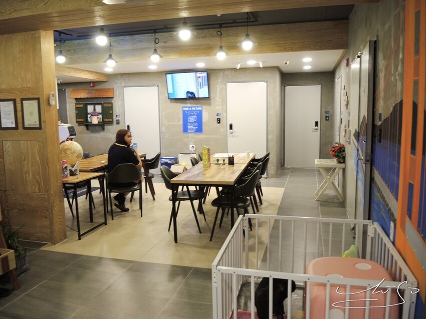 西面K旅館的Check in櫃台在4樓,公共空間和吃早餐的地方都在4樓