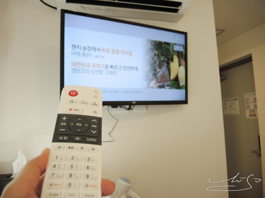冷氣開差不多10分鐘就涼了,房間內也是該有的都有:冰箱、冷氣、電視、吹風機、鏡子和兩個衣架