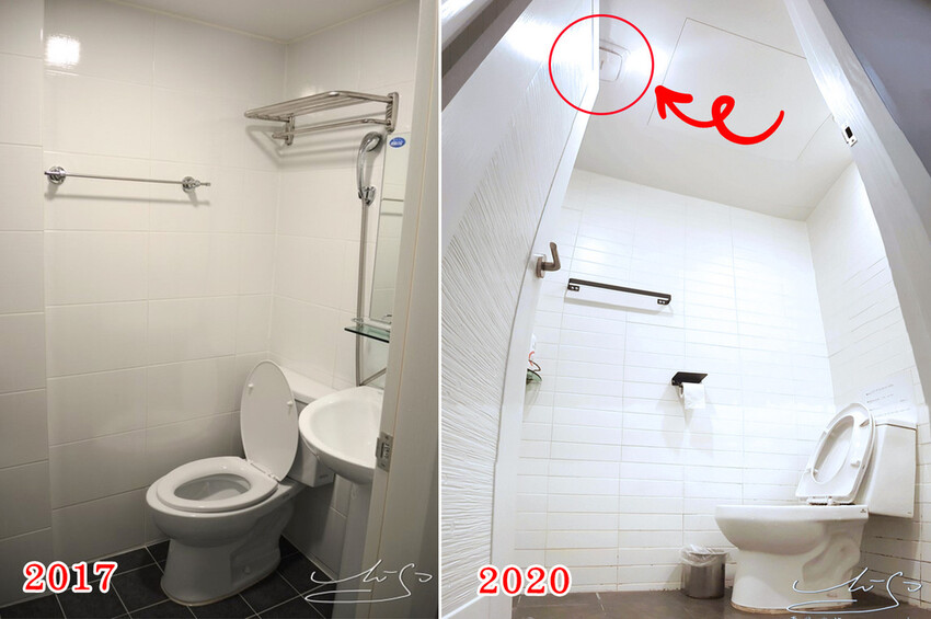 浴室跟南浦洞的K差不多,稍微在小一點,2017年來助的時候愈是沒有抽風機所以悶熱