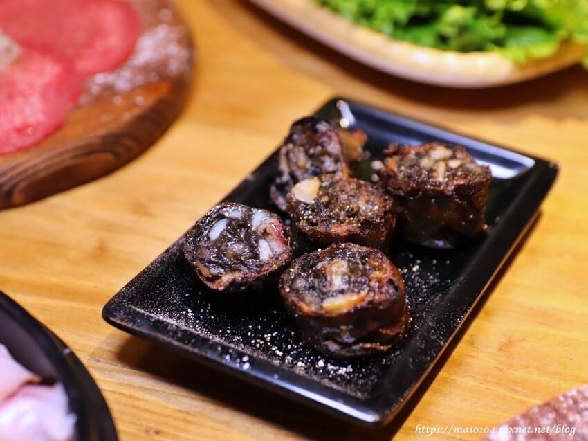一上桌就聞到陣陣的香氣撲鼻而來,尋著味道原來是墨魚香腸飄散出來的氣味