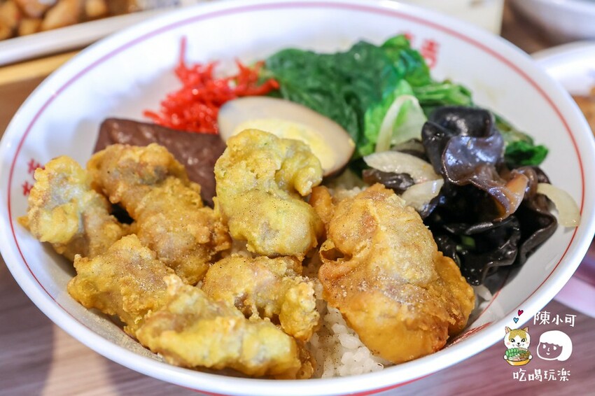 像是丼飯的呈現,白飯上面有五樣小菜,也是依照店家當天菜色為主,這天吃到的豆乾和魯蛋都很不錯,入味鹹香非常下飯。