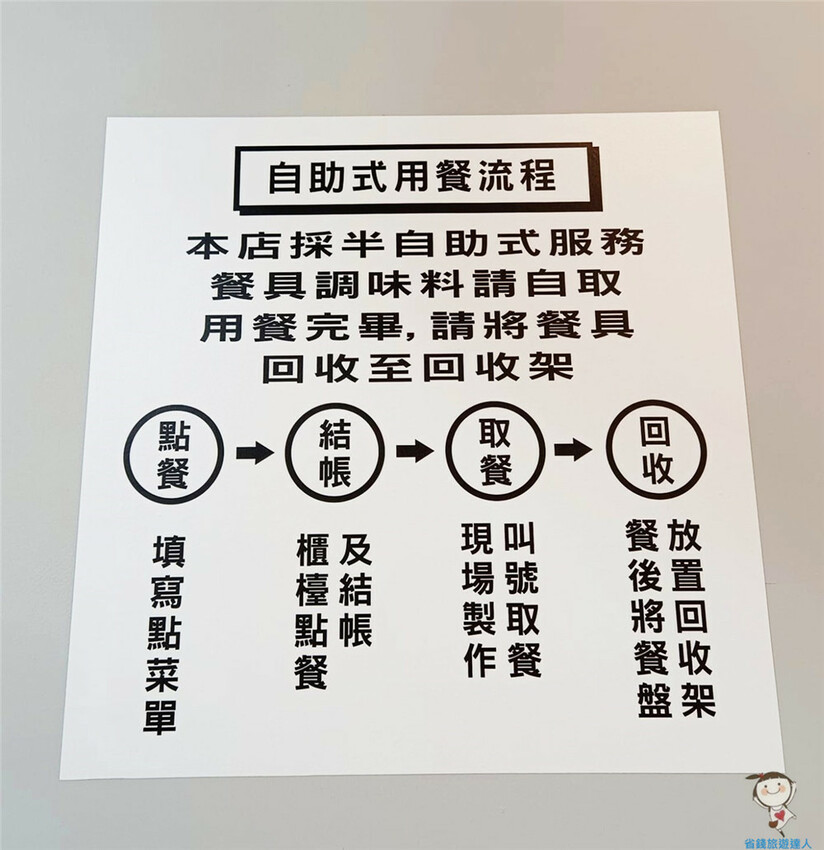 牆上還貼了這張點餐流程提醒顧客照著SOP做