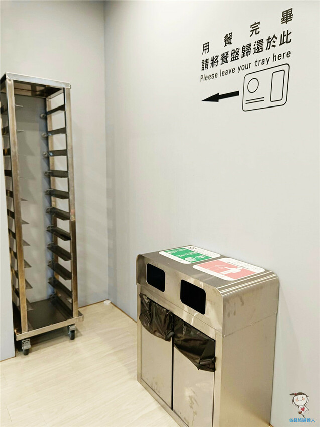 吃完後記得將餐盤歸還於此處,旁邊還有二個垃圾桶,記得做好資源回收喔!