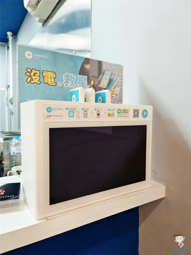沒想到除了桌底下的包包置物籃,他們還貼心地在櫃檯上擺了這個沒電救星📲
