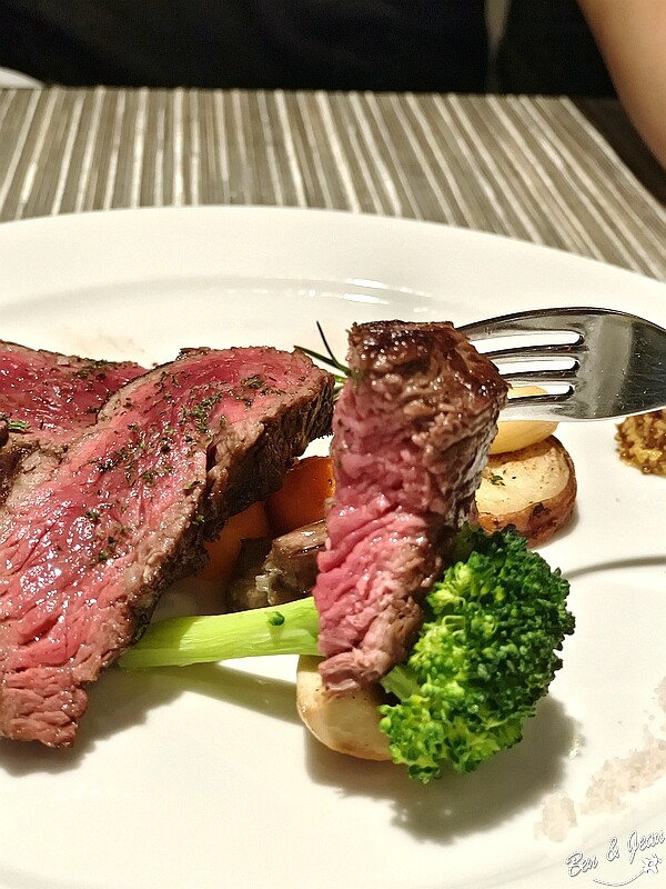 五分熟!! 色澤粉紅誘人,肉質也軟嫩無比,比起另外的那盤沙朗,肉汁更是飽滿豐富,真的吃到嘴角上揚啊