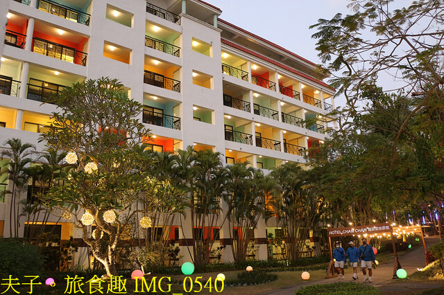 椰林泳池,水池區分兩個區塊,小池水深 50公分,大池由 50公分漸深到 150公分,下水要穿泳衣泳帽,旁邊有毛巾可借,也可帶回房間,暑假期間夜間有「水上跑酷運動會」,入住房客報房號就可參加,一分鐘內過關挑戰成功,就可獲得小禮物。
