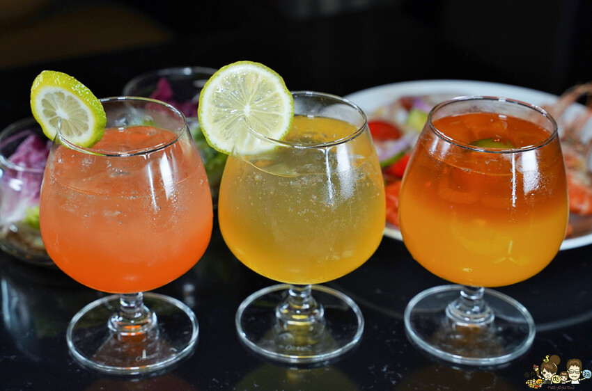 水果冰茶 、葡萄柚氣泡 、蜂蜜檸檬氣泡飲