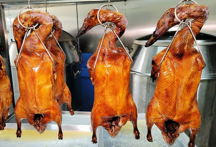 每一隻烤鴨淨重3斤半,那肥美的身軀太誘人了! 站在一旁的我都不免要偷擦一下口水先~~