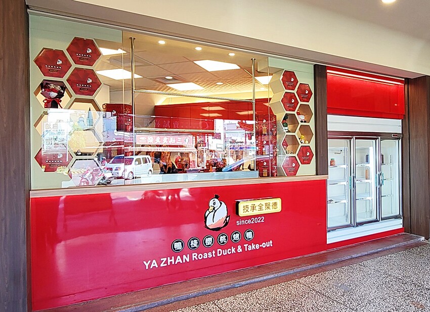 新潮的設計,有別於過往烤鴨店給人油膩的感覺,整體店面設計清晰又獨具特色,尤其一旁的蜂巢式設計。