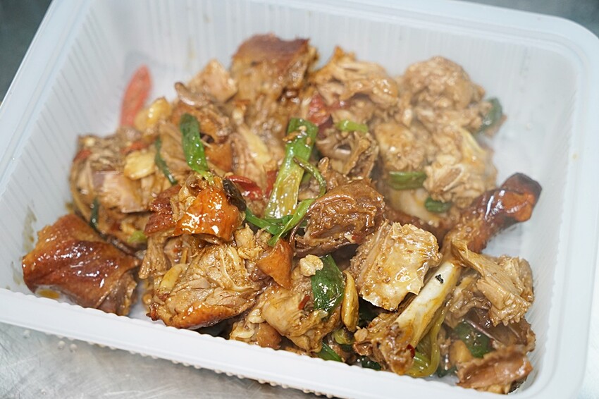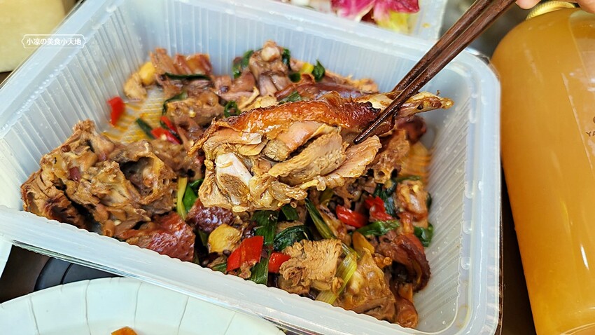 櫻桃烤鴨片鴨以外的鴨架,小涼選了香辣干鍋,師傅的大鍋大火快炒瞬間入味的辣香,可是讓好姊妹們說能再烤鴨外帶店吃到餐廳等級的料理有夠讚!!