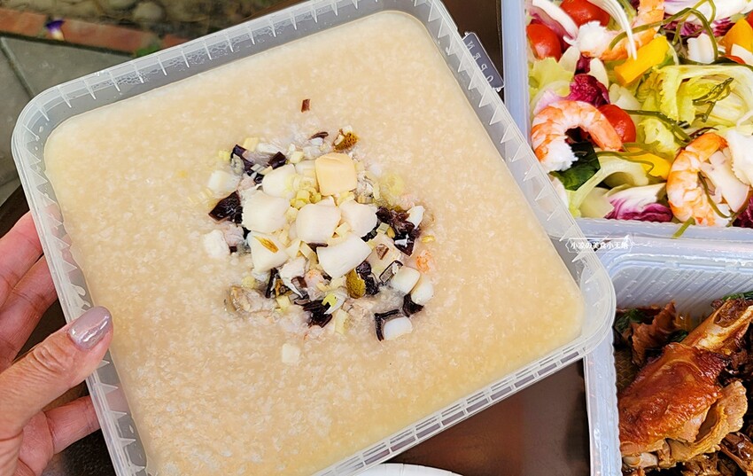 先來說說這裝厚功鴨架粥的容器,不只是耐高溫而且四邊都很緊密的蓋上,不用擔心會漏出來,打開時只要從箭頭處往下掰開即可打開唷!