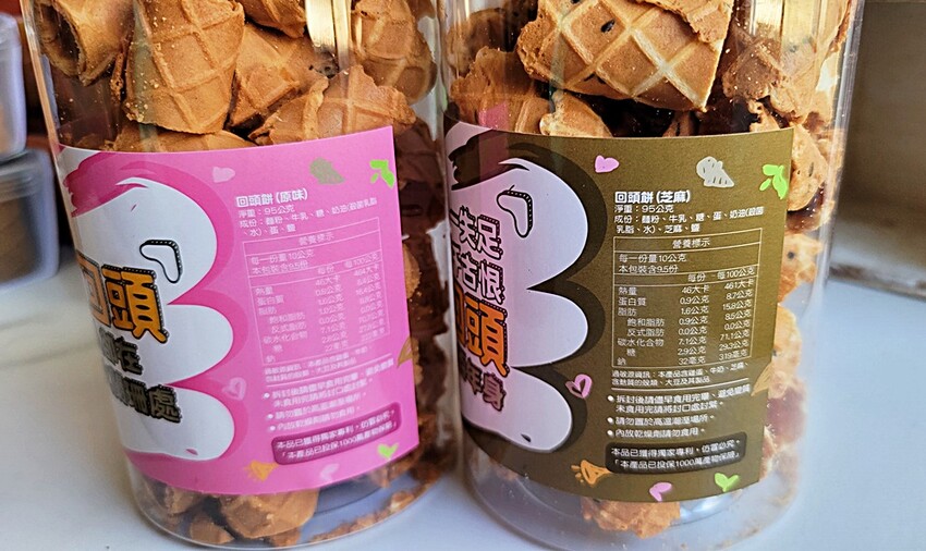 以純鮮奶脆餅用機器高速切割避免破碎,將原本如同蛋捲長度的鮮奶脆餅前端及後端切割下來稱為回頭餅,大小長度剛好一口一個超涮嘴,而且會發現的是回頭餅的那酥脆度更明顯,畢竟這是在兩頭的底部帶點薄酥,相對地更涮嘴。