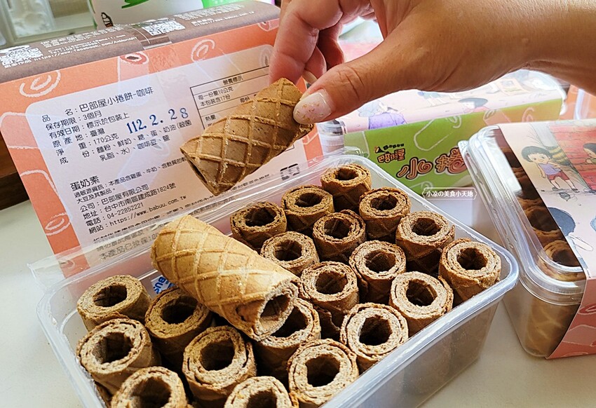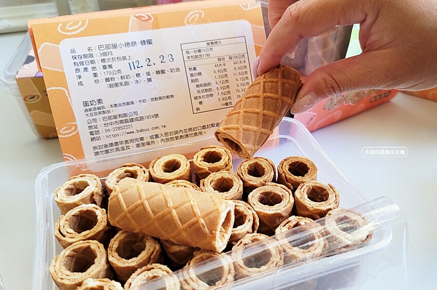巴部屋小捲餅-原味,長度大約有五公分左右,但小涼的手有點粗擠不進去洞洞,阿某就可以上演小捲餅戲碼囉XD 我家姪子就會把五根手指都套上,然後邊看卡通邊吃超逗趣。以純鮮奶當基底的小捲餅,製作過程也不添加香料、色素、防腐劑等,完全是可以安心給小孩食用的零嘴。原味是經典口味,能感受到單純的滋味,一咬喀嚓一聲!厚實的酥脆感伴隨著濃醇的奶香與淡雅的蛋香,不只是涮嘴還讓人停不了口呢
