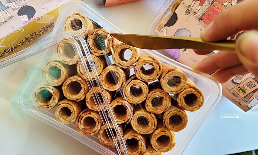 以不加一滴水成名的純鮮奶脆餅,應客人要求希望有「更短一些」的脆餅,不只是更方便食用與擕帶,就算送禮也更精巧,所以便造就了這小捲餅的誕生,而且這小捲餅可是取鮮奶脆餅的中間段唷!!每一口都能感受到真材實料與厚實酥脆感呢...每一盒小捲餅都有24支唷!