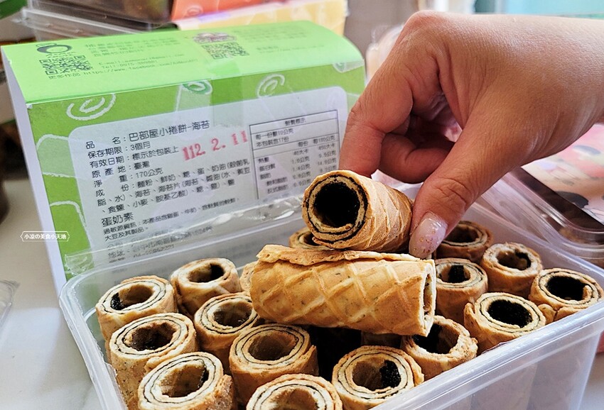 巴部屋小捲餅-海苔,想不到吧!巴部屋將海苔研磨成細末融入餅乾裡以外,還把整片海苔直接包進去了!!咬下去不只是餅乾脆還有海苔的酥,加上甜鹹的滋味伴隨著奶香的溫潤氣息,真的讓人一不小心就狂嗑一盒啦!!
