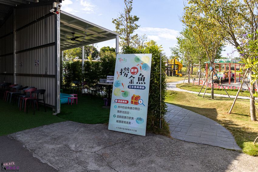 接著來看看戶外區,園區也有遊園車可以搭程,這裡的戶外親子活動區有根據季節不同推出主題,像是夏季會有日本祭典的撈金魚。