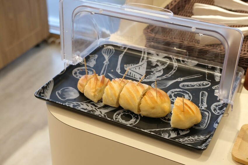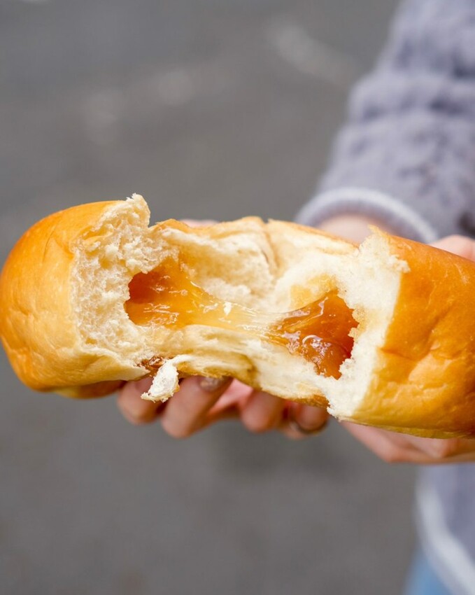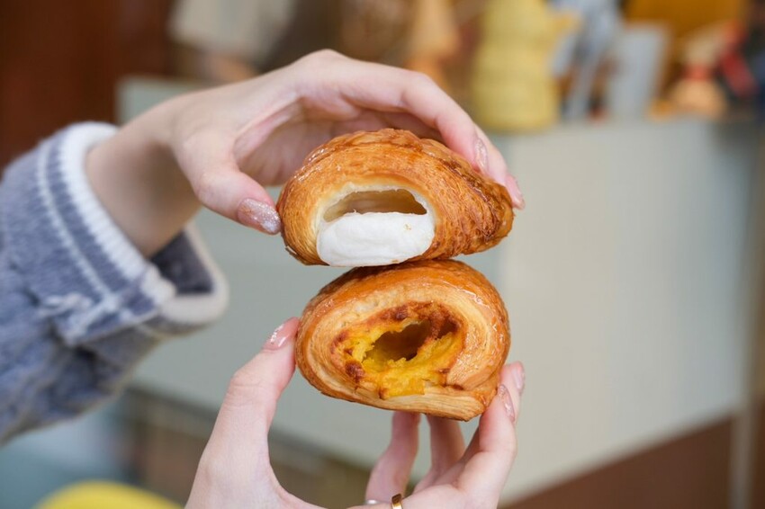 ▼丹麥憨吉酥和丹麥Q心酥外衣像是法式可頌,分別包著Q彈麻吉和綿密地瓜,外層鬆脆內餡飽滿,回烤後熱熱的更加好吃。