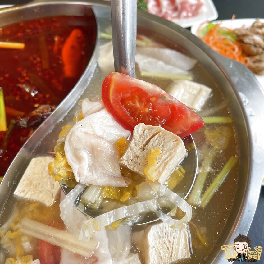 酸菜鍋是酸V帶甜的湯頭,有番茄和酸白菜兩種不同層次的酸香,涮海鮮或肉肉都很適合