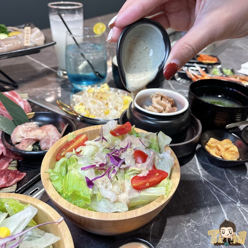 色彩繽紛的生菜沙拉,淋上醬料後,不僅清爽解膩,又可以開胃喔