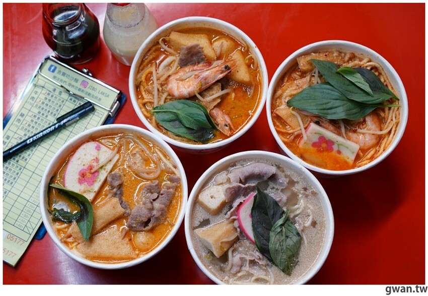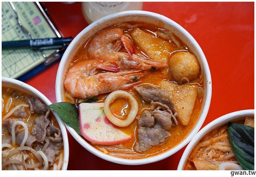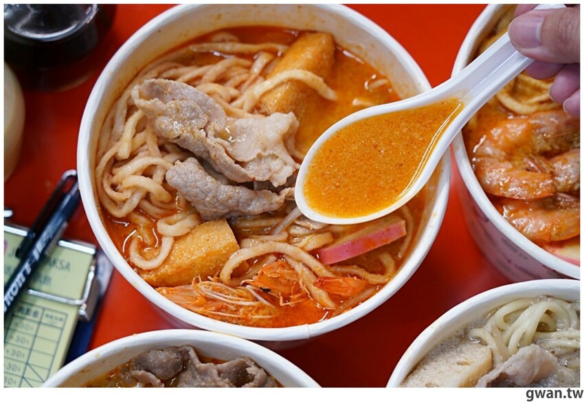 我們這次點了四種口味,除了肉骨茶外,其他三碗都是叻沙湯為底,顏色看起來雖然差不多,但味道還是有很大差異呦,我自己最喜歡的是肉骨茶跟酸辣口味